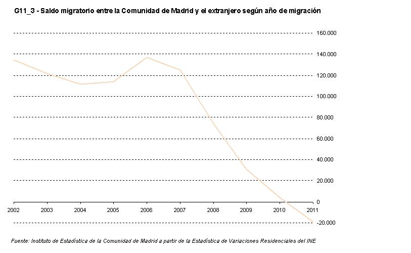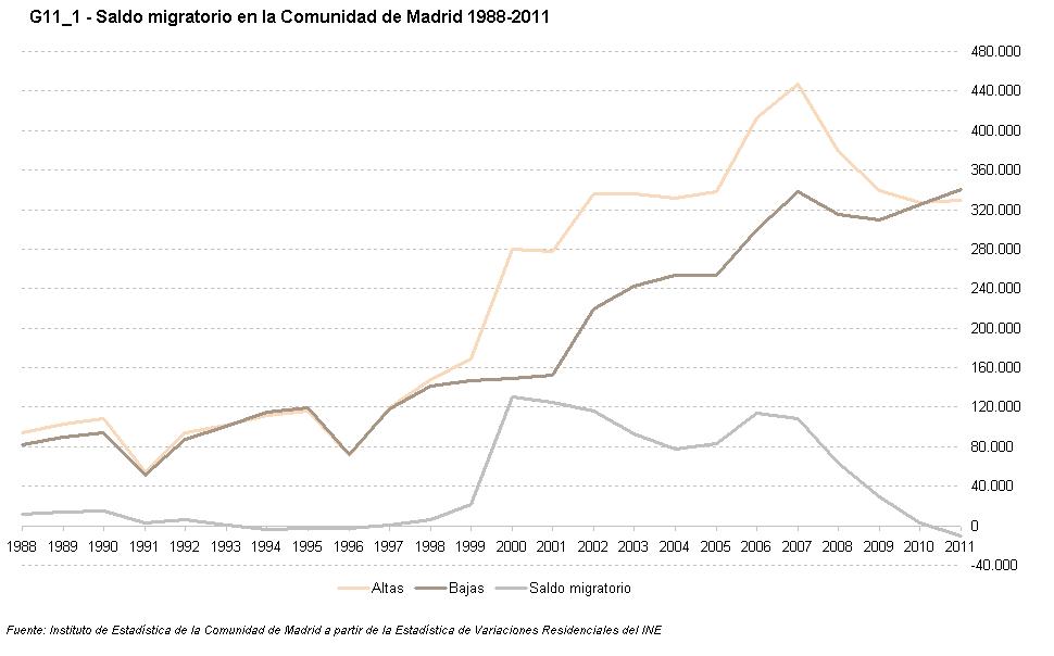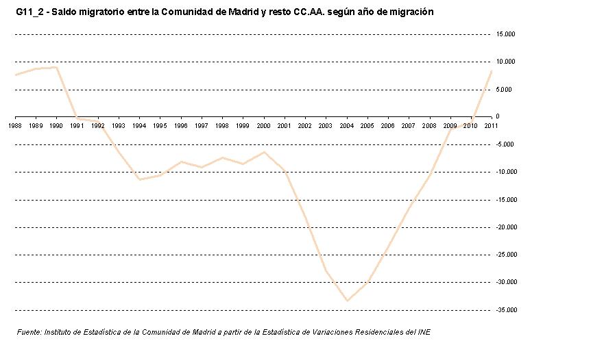 G11_1 - Saldo migratorio en la Comunidad de Madrid. 1988-2011.