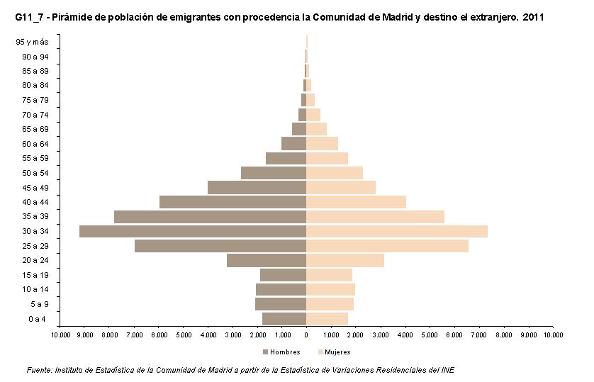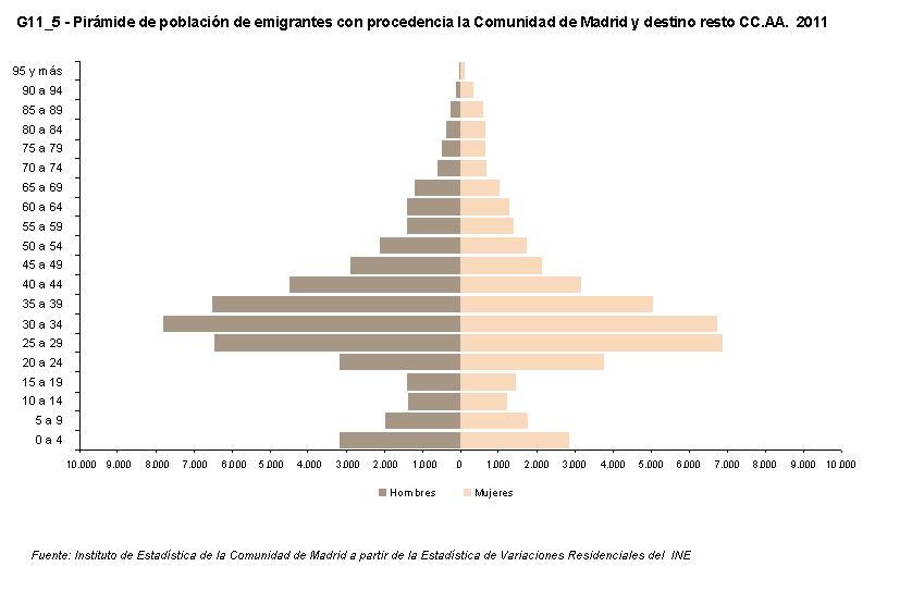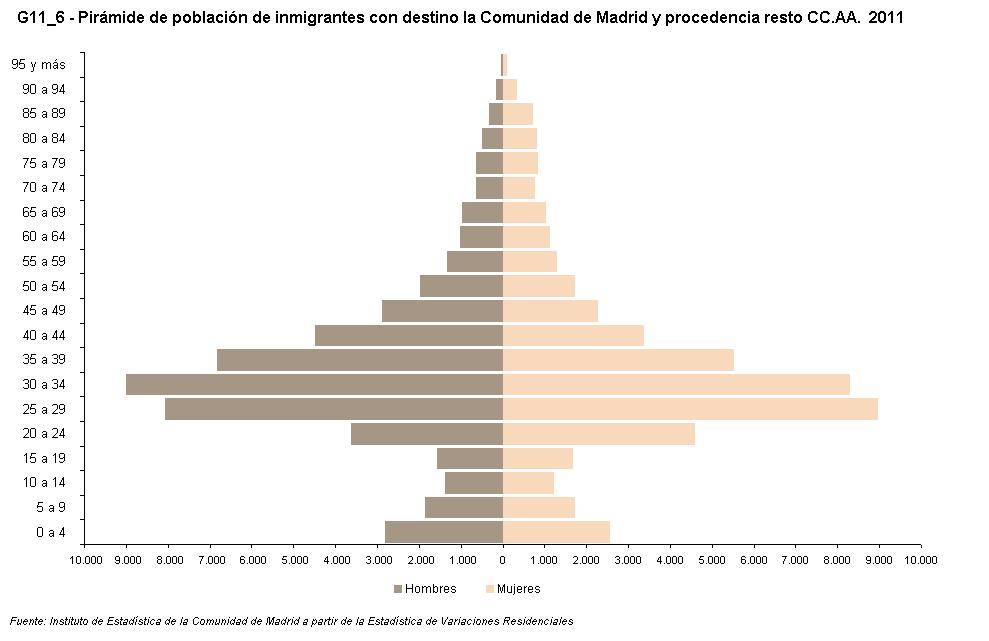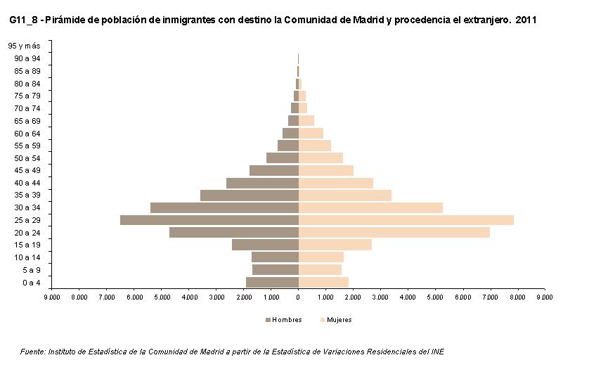 G11_4 - Pirámide de población de migrantes con procedencia o destino la Comunidad de Madrid. 2011.