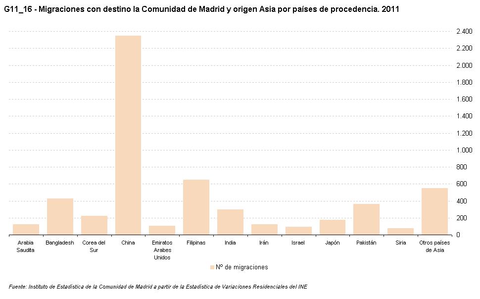 2. Saldo migratorio con origen y destino la Comunidad de Madrid. 2011.
