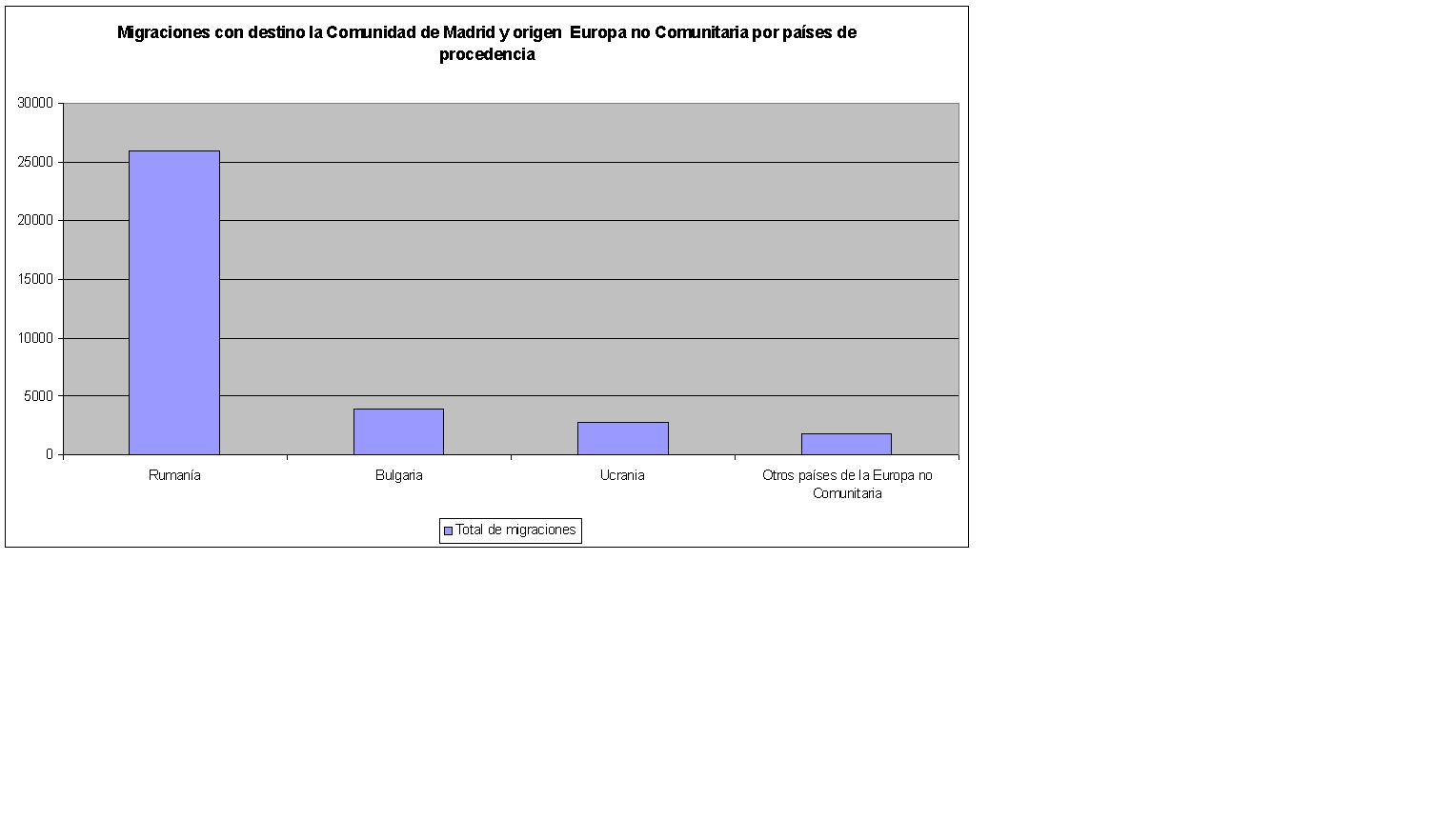 Migraciones con destino la Comunidad de Madrid y origen Europa no Comunitaria por países de procedencia. 2004