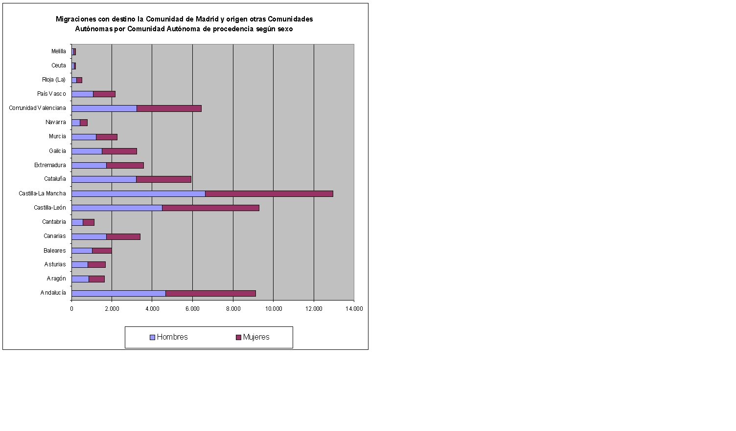 Migraciones con destino la Comunidad de Madrid y origen otras Comunidades Autónomas por Comunidad Autónoma de procedencia y sexo. 2004
