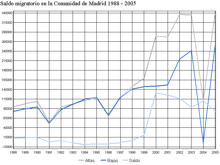 Saldo migratorio en la Comunidad de Madrid 1988-2005