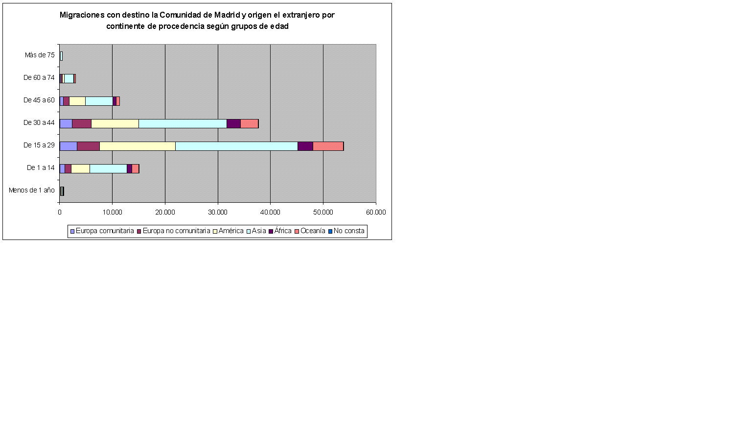 Migraciones con destino la Comunidad de Madrid y origen el extranjero por continente de procedencia según grupos de edad