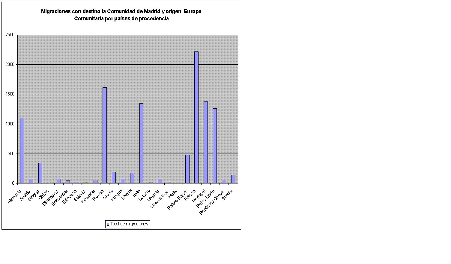 Migraciones con destino la Comunidad de Madrid y origen Europa Comunitaria por países de procedencia