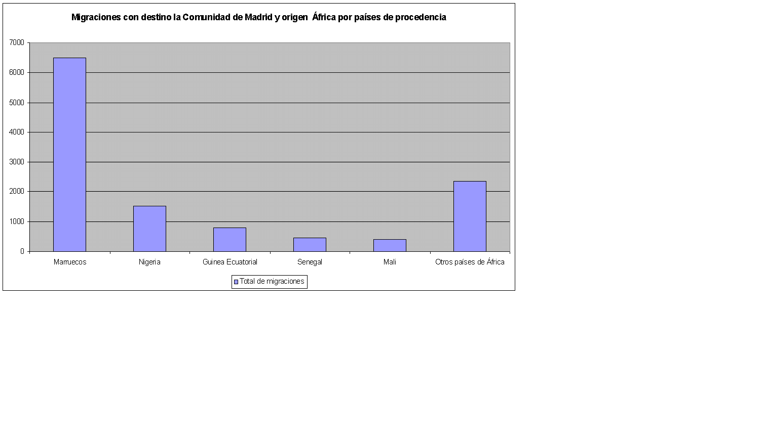 Migraciones con destino la Comunidad de Madrid y origen África por países de procedencia