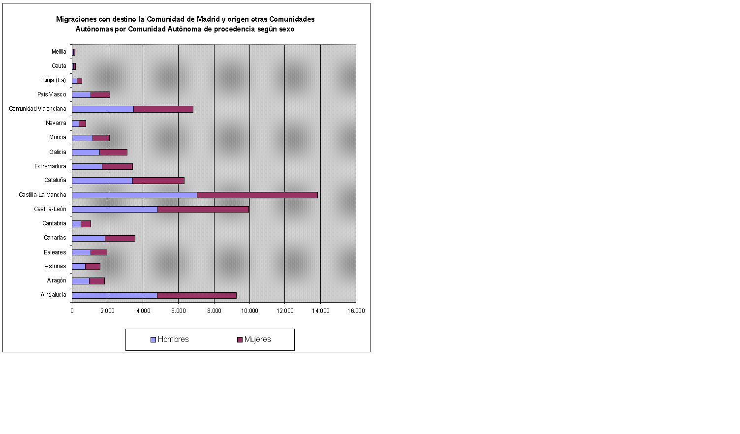Migraciones con destino la Comunidad de Madrid y origen otras Comunidades Autónomas por Comunidad Autónoma de procedencia y sexo