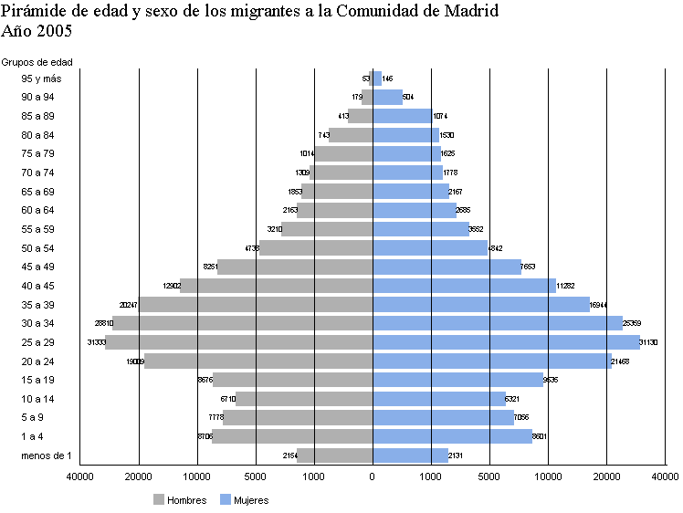 Pirámide de edad y sexo de los migrantes a la Comunidad de Madrid