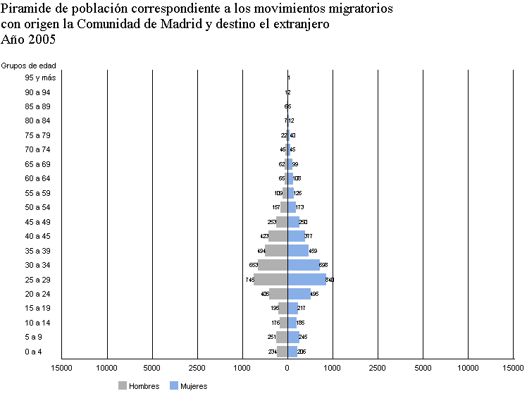 Pirámide de población correspondiente a movimientos migratorios con origen la Comunidad de Madrid y destino el extranjero