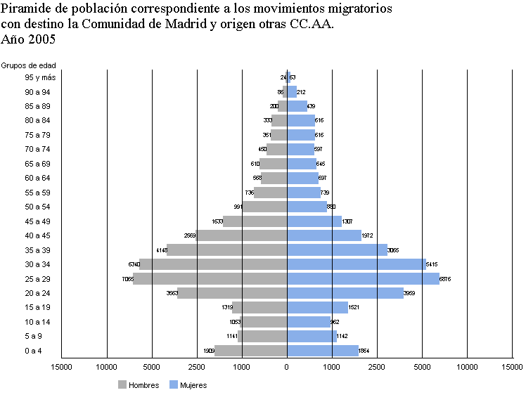 Pirámide de población correspondiente a movimientos migratorios con destino la Comunidad de Madrid y origen otras Comunidades Autónomas